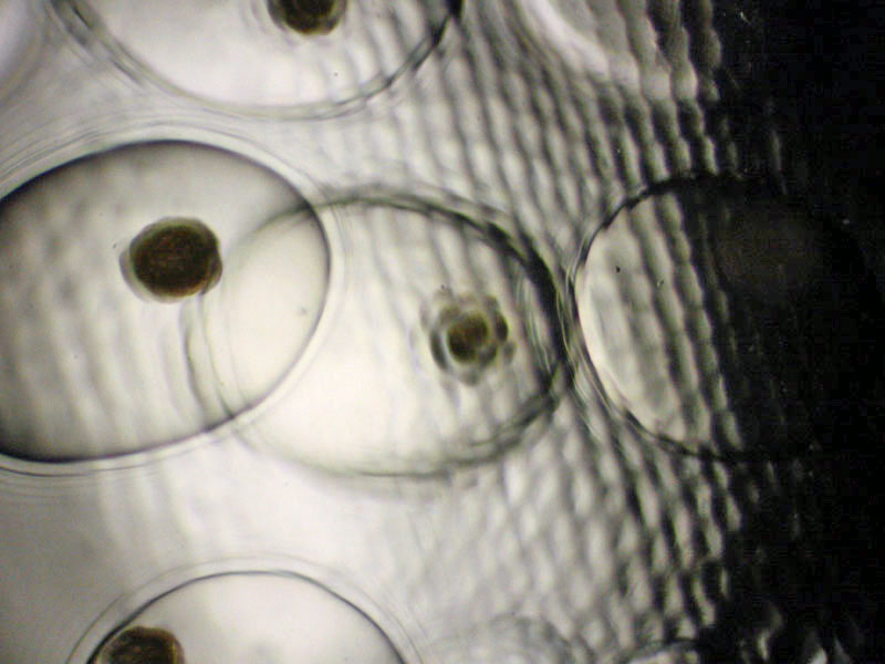 Nach einer Embryonalentwicklung von etwa 8-14 Tagen (temperaturabhängig! Bei 24°C: 10 Tage) verlassen die winzigen, aber voll ausgebildeten Jungschnecken den Laich und begeben sich auf Futtersuche.