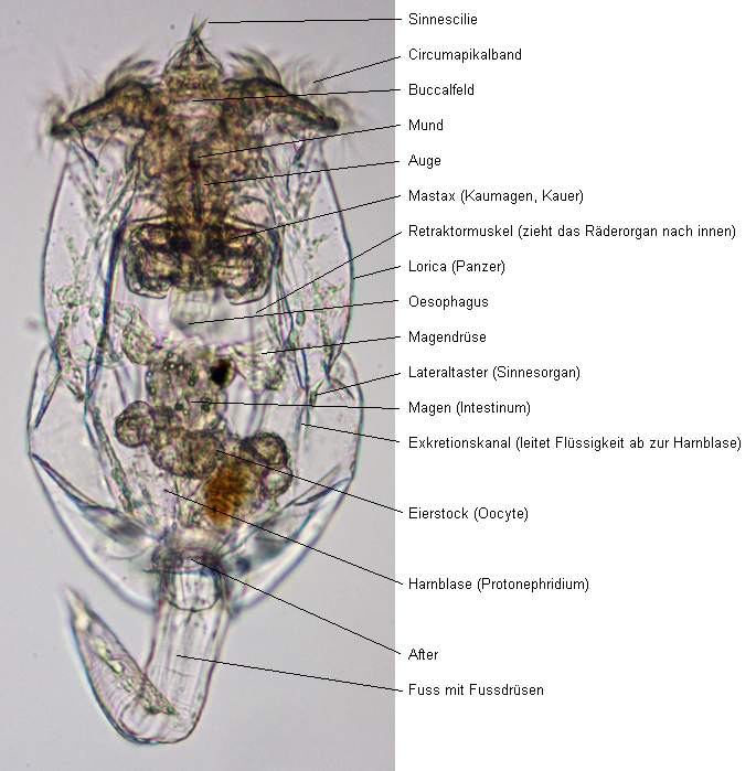 Das Räderorgan dient der Fortbewegung und dem Nahrungserwerb und kann in den Rumpf eingezogen werden.