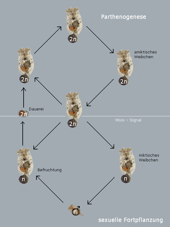 Diese Männchen begatten nun die miktischen Weibchen und befruchten ihre Eizellen.