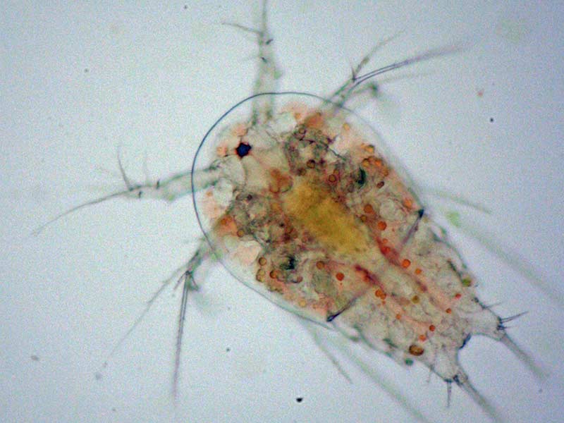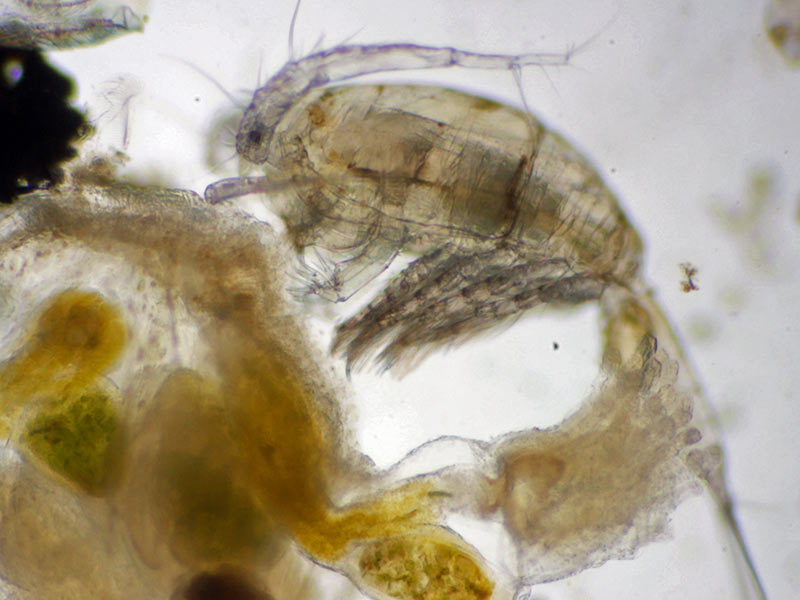 In dieser Bakterienblüte scheint sich der Hüpferling augenscheinlich recht wohl gefühlt zu haben.