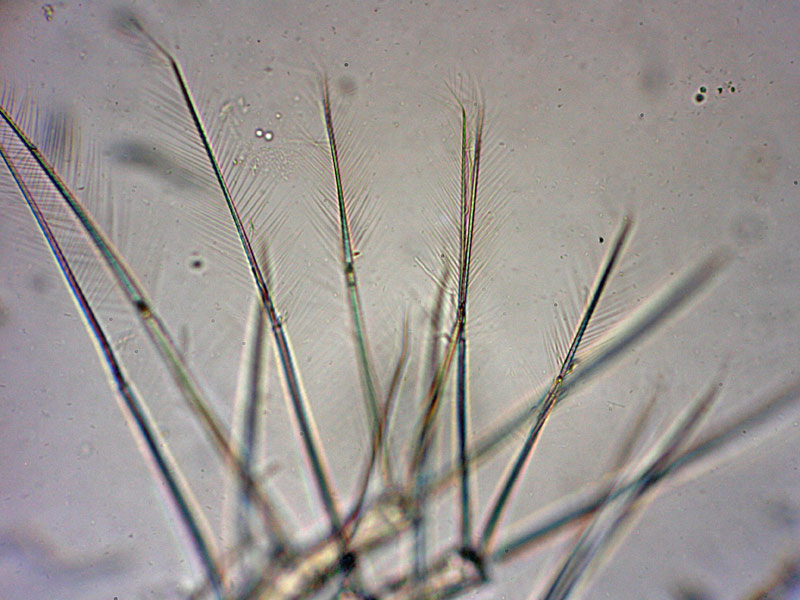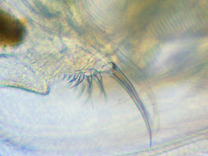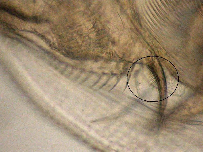 Von diesen Merkmales ist die bedornte Furcalkralle zwar am schwierigsten festzustellen (Mikroskop, 100x), liefert aber das klarste und eindeutigste Unterscheidungsmerkmal.