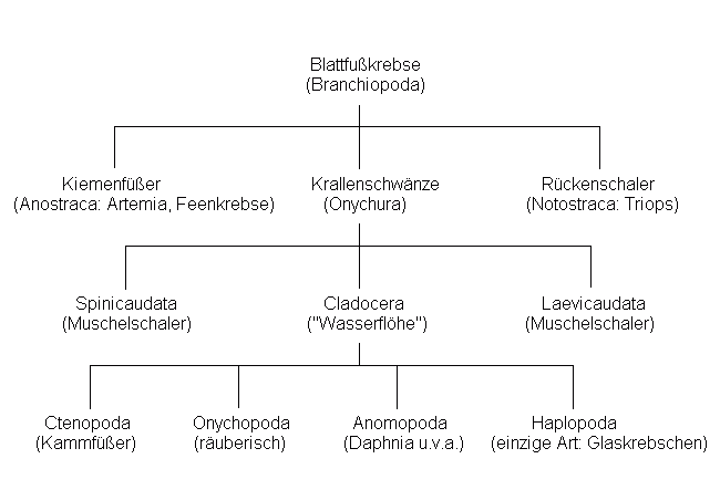 Wasserflöhe zählen zur Klasse der Blattfußkrebse (oder Kiemenfußkrebse, Branchiopoda).
