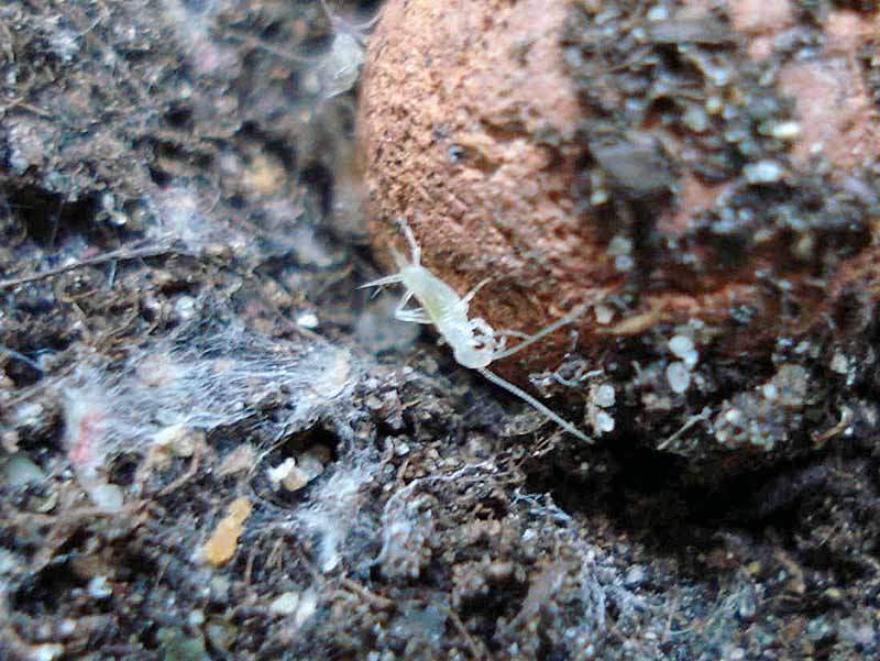 Ich hatte bereits Tiere drin entdeckt, aber das waren Springschwänze. Nun kriechen ganze Kohorten an jungen Heimchen raus.