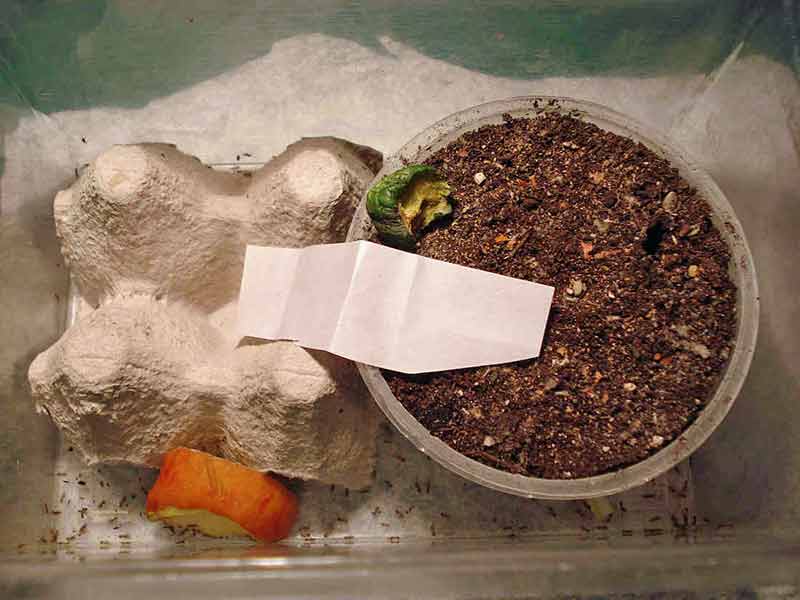 Ein anderes Problem ist die Scheu der jungen Heimchen, die sich gerne in kleinsten Lücken und Hohlräumen des Substrats verkriechen.