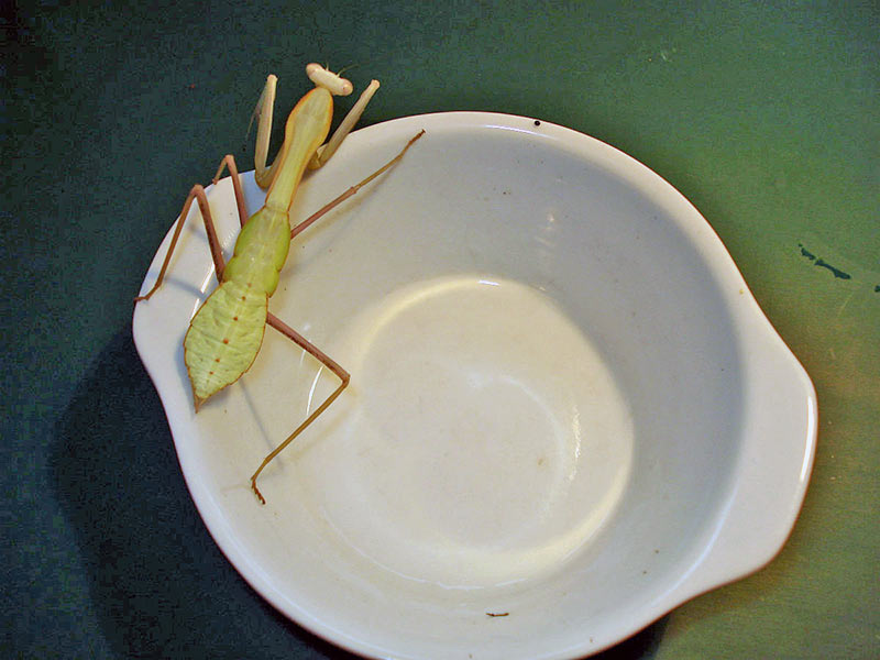 Ich hab damals - vor vielen Fütterungen und Häutungen - schon mal ein Foto von einer Mantis in dieser Multifunktions-Schüssel gemacht.
