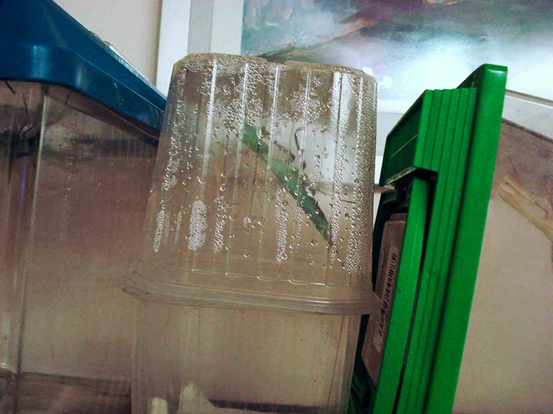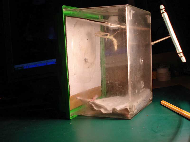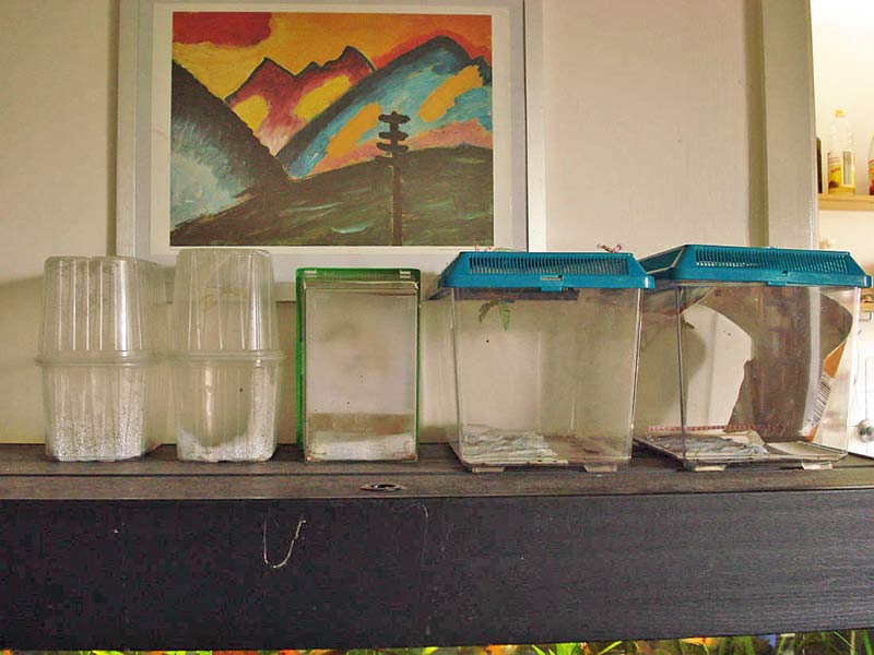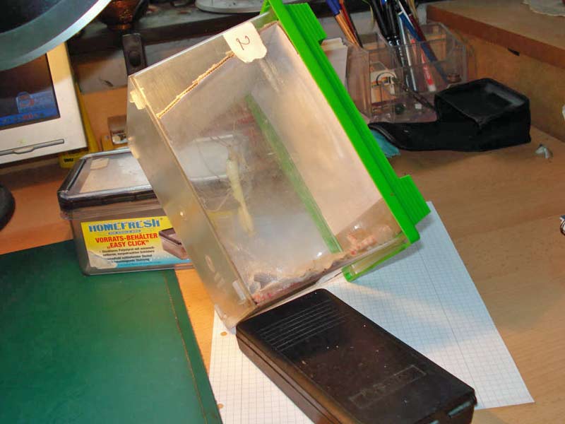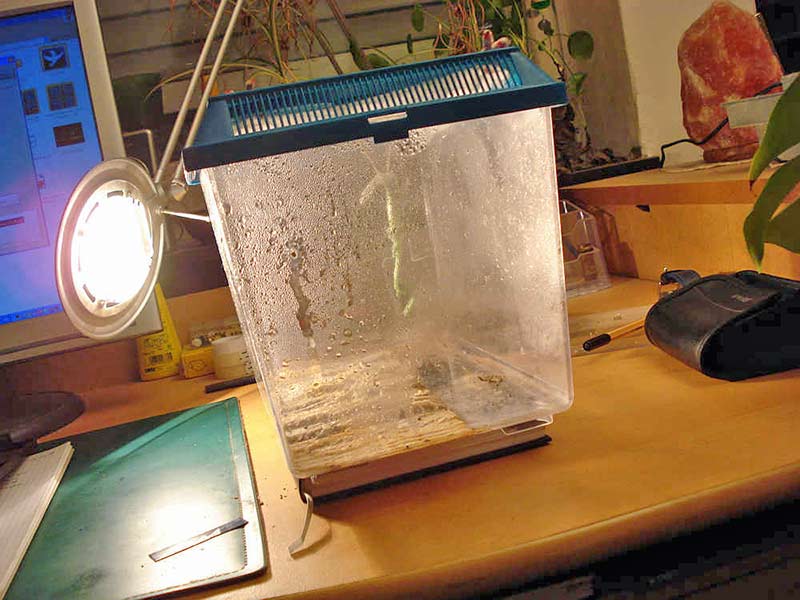 Ich befürchte daß die Eierablagebox ausgetrocknet ist; die Mühe der Weibchen bis jetzt war also leider umsonst. Mich wundert sowieso dass die überhaupt noch legen,