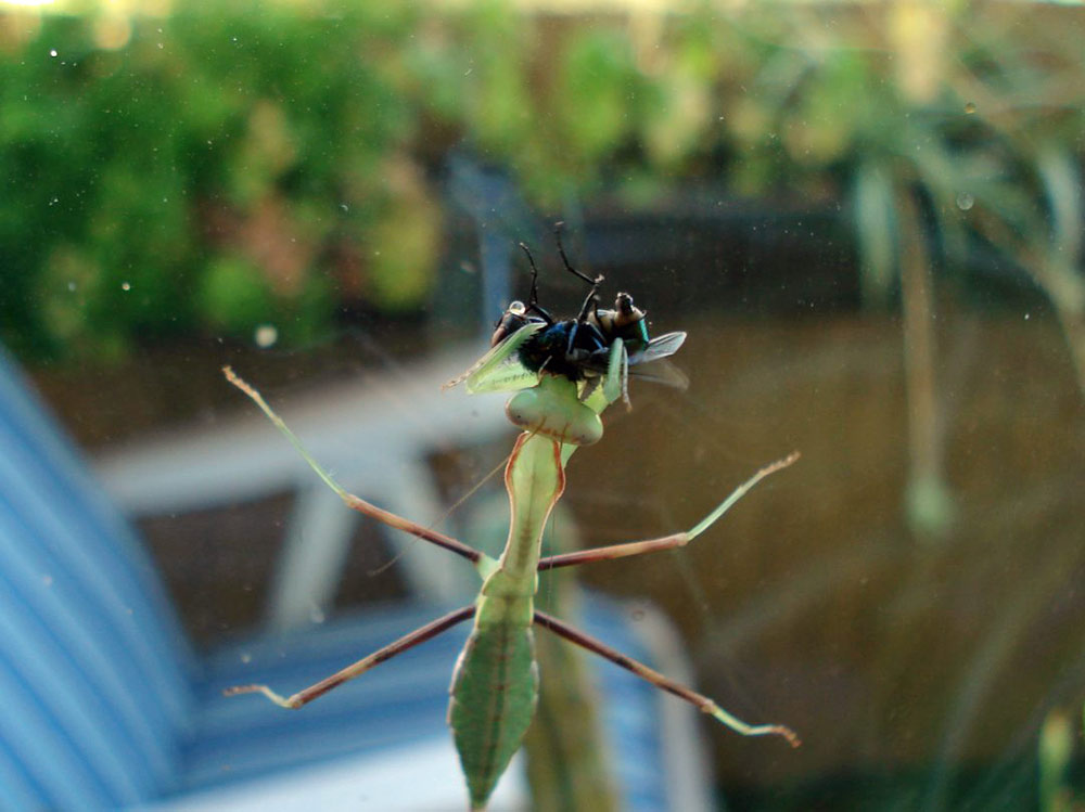 Trotzdem fällt keinem Halter ein Zacken aus der Krone, wenn er mal für seine Mantis einer lecker Fleischfliege hinterherjagt.