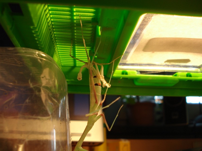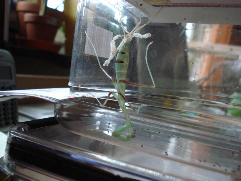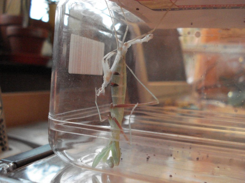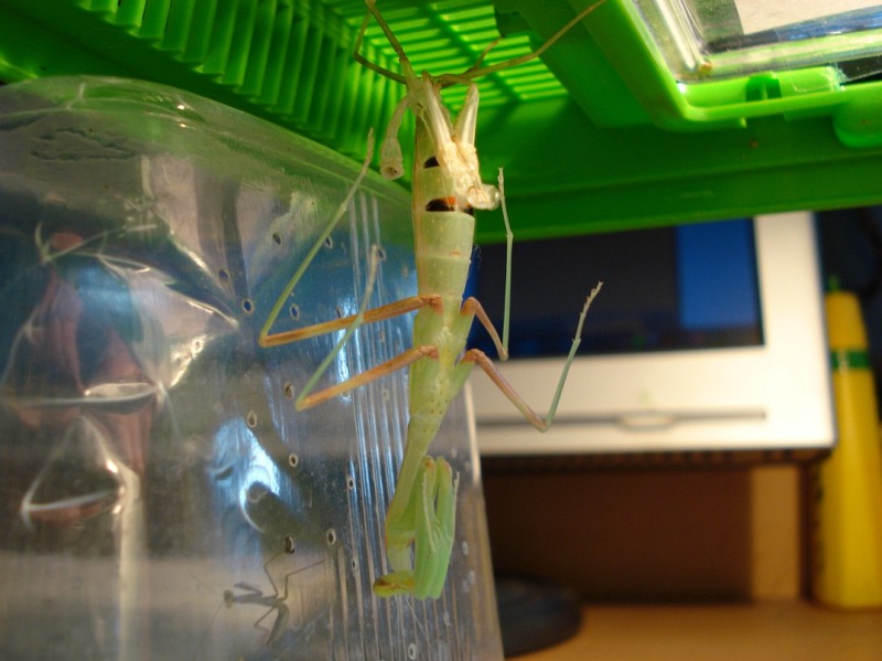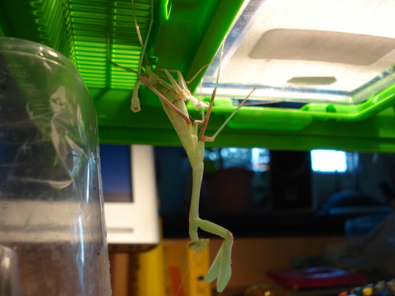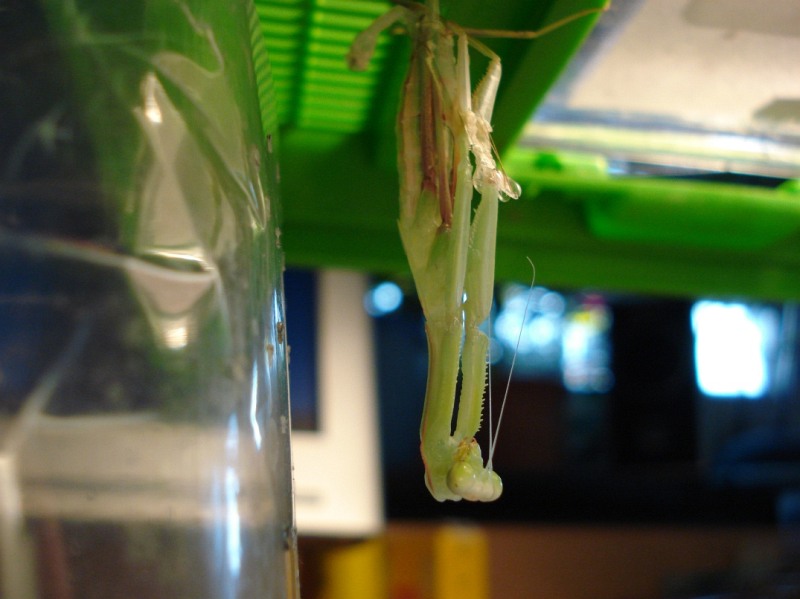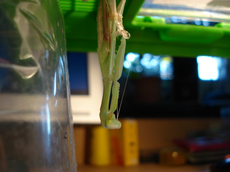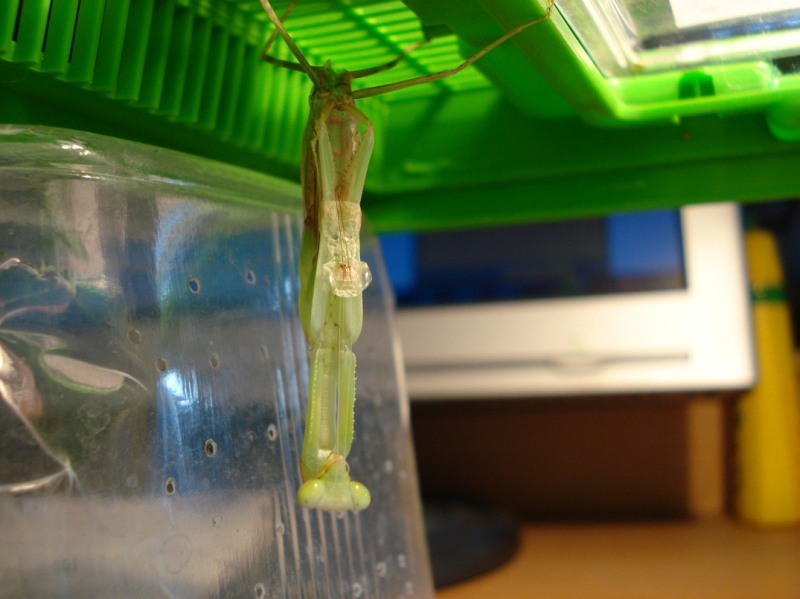 Generell ist es überraschend, wieviel Platz eine Häutung braucht; der Behälter sollte auf jeden Fall doppelt so hoch sein wie die Körperlänge der Mantis.