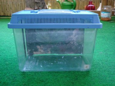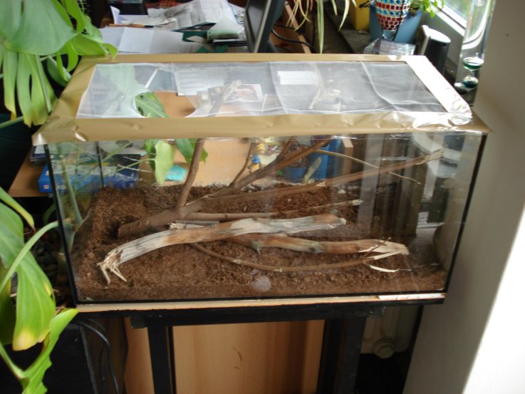 Das beste ist es wohl, man lässt das Substrat ganz weg und benutzt eine Plastikbox, in der man normalerweise die Heimchen in Supermarkt kriegt.