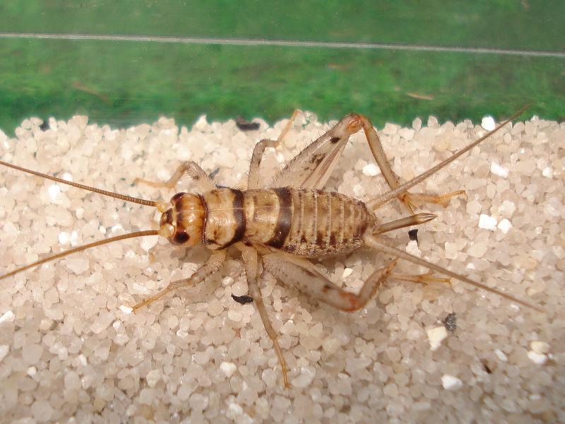 Die Kurzflügelgrille, südliche Hausgrille oder Bändergrille (Gryllodes sigillatus =supplicans, engl. tropical house cricket oder decorated cricket) stammt vermutlich aus dem Südwesten Asiens,