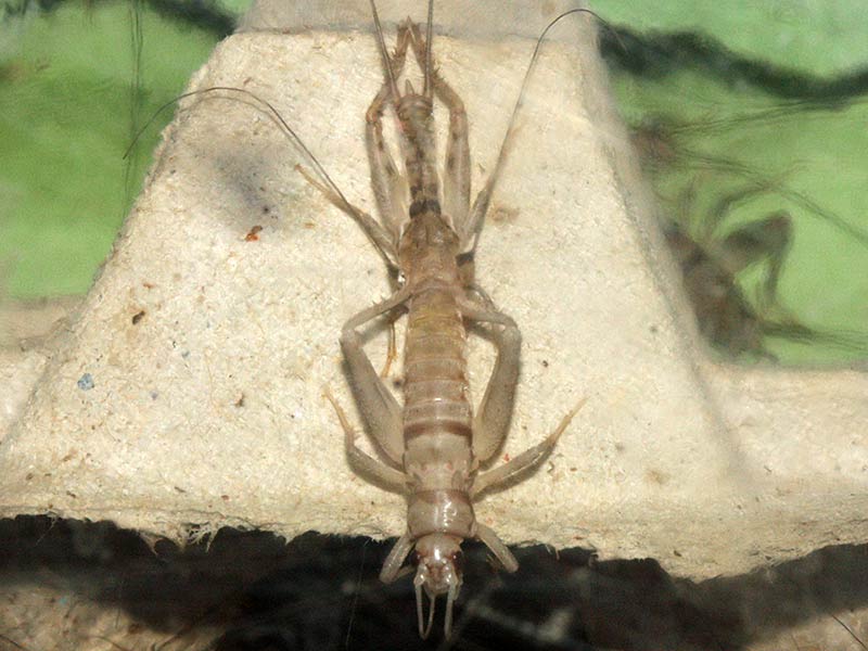 Weiterhin fällt auf, dass bei dieser Grillenart beiden Geschlechter auch im Erwachsenenstadium keine Flügel ausbilden, jedenfalls keine funktionstüchtigen.
