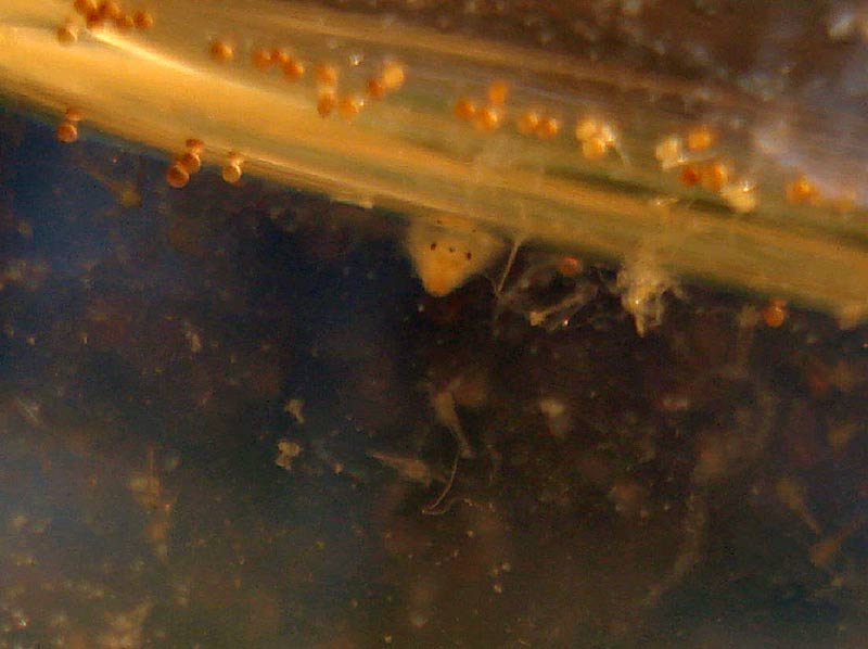 Ich hab noch zwei weitere Fälle von Verpilzungen gefunden und isoliert, d.h. in ein separates Gefäß (eine Art Tasse) verfrachtet und den Salzgehalt auf einen Teelöffel pro 50 Liter eingestellt.