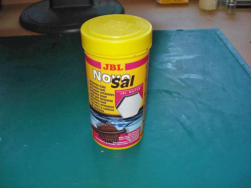 Die Dose hat den malerischen Namen Novosal und wirbt damit, dass es nicht nur Artemia-Salz sei sondern dass es pH-Wert stabilisierende Zusätze enthält