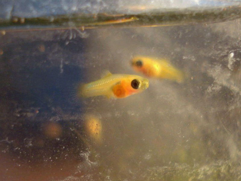 Fünf Kleine sind derzeit im Becken. Da sie bereits Flockenfutter fressen, haben sie ziemlich gute Überlebenschancen.