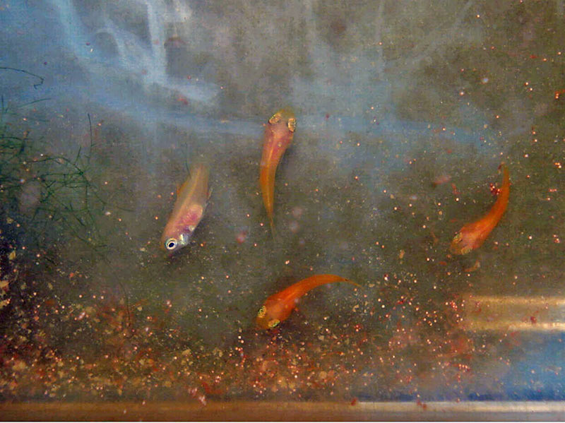 Langsam wird deutlich, dass es manche Jungfische offensichtlich bis jetzt nicht geschafft haben, ihre Schwimmblase mit Luft zu füllen.