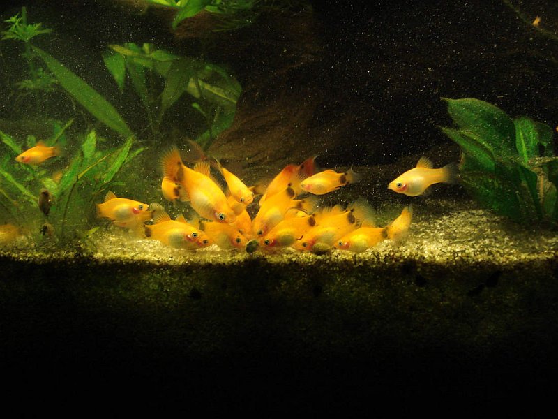 Nachdem ich im 200 Liter-Becken nur sieben Platys drin hatte und aus dem Nachwuchs im selben Becken nichts rechtes wurde,