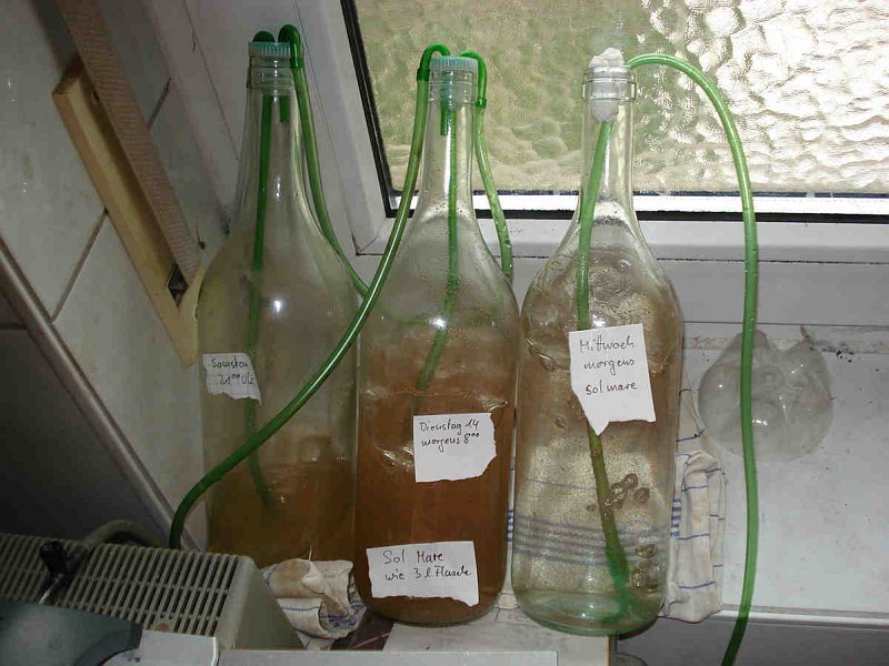 Rechnet man zwischen 36 und 48 Stunden Zeit, die Artemia benötigen um auszuschlüpfen, erhält man bei zwei Flaschen, die ständig laufen, täglich frische Artemia.