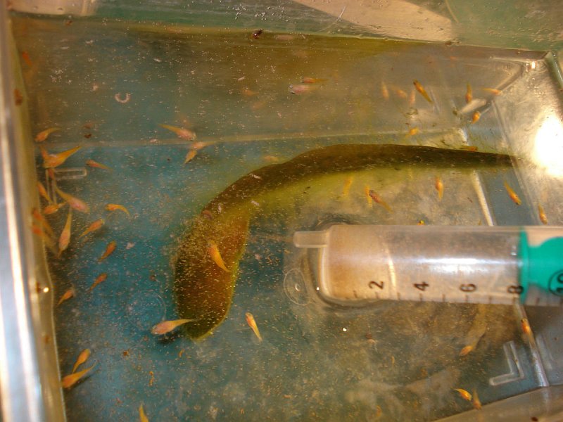 in der Hoffnung dass in der totalen Finstenis der Platy seinen Jungen nicht gefährlich werden kann, weil er sie schlicht nicht findet.