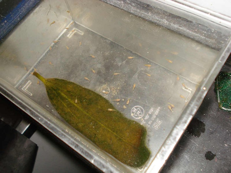 Heute hab ich das mal rübergesetzt ins 20 Liter Becken zu den größeren Jungs und die hatten, wie es aussieht, ganz schön Appetit auf mal nen anderen Salat.