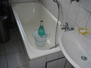 Natürlich hab ich´s gründlich ausgewaschen: Erst mit Toilettenreiniger Domestos, dann einem anderen weißen Pulver (vermutl. Scheuerpulver),