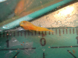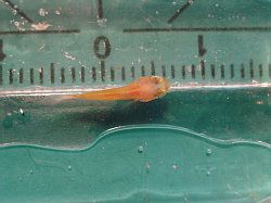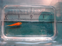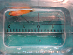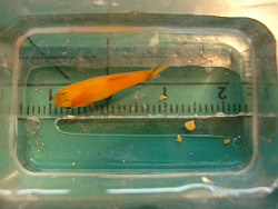 Und noch etwas: Als ich heute im Minibecken füttern wollte lag ein Jungfisch auf dem Beckenrand.