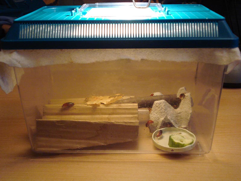 30 bis 50 lichtscheue Schaben bevölkern diese Box.