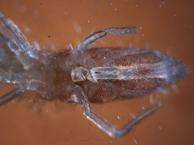 Hierzulande ist auch bei genauerem Hinsehen der Wasserspringschwanz (Podura aquatica) sichtbar, der auf der Oberfläche stehender Kleingewässer lebt.