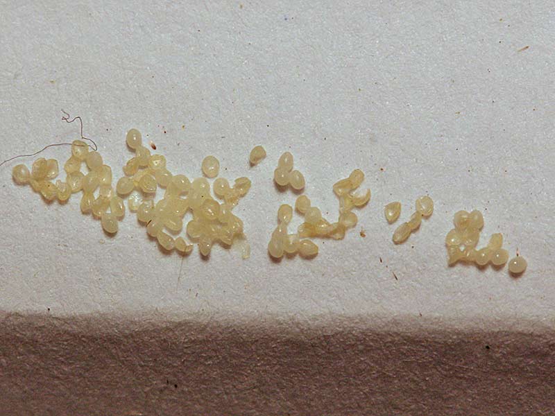 Verpuppungsreife Tiere verlassen das Substrat und sind leicht einzusammeln; kleinere Tiere muss man aus dem Substrat heraussuchen.