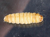 Die Große Wachsmotte - Galleria mellonella erreicht als Raupe eine maximale Länge von ca 25 mm bei einem Durchmesser von gut 5 mm.