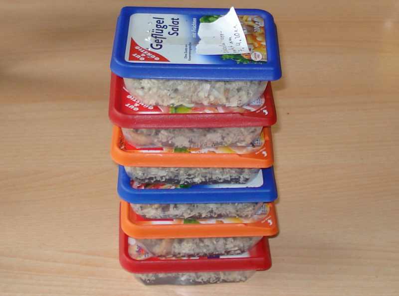 Im Bild: Da ich Duftstoffe mit der Luft ausbreiten, sind in diesen leeren Fleischsalat-Behältern die Atmungslöcher seitlich eingebohrt.